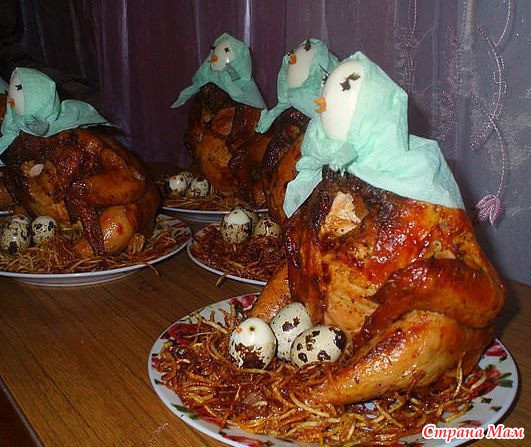 Оригинальная подача жаренной курочки.