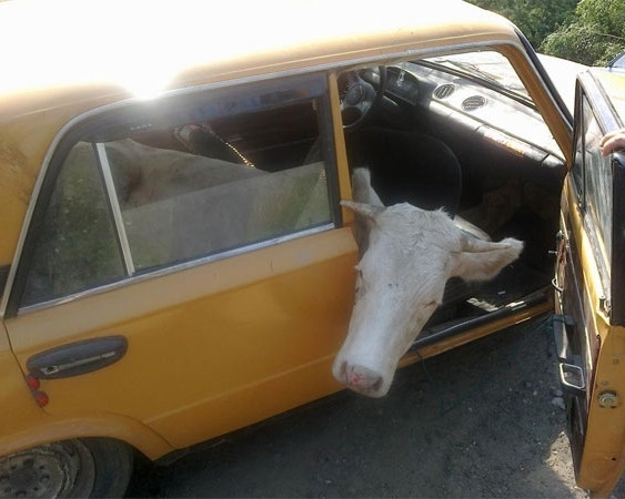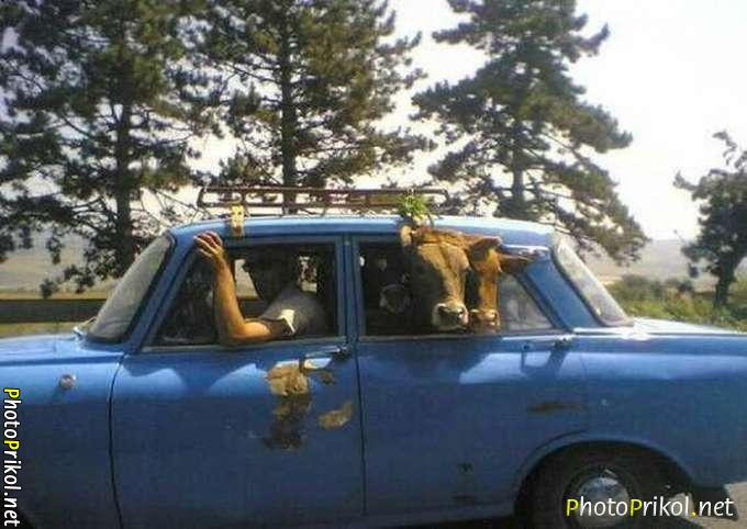 Интересно, как этих животных поместили в салон автомобиля.