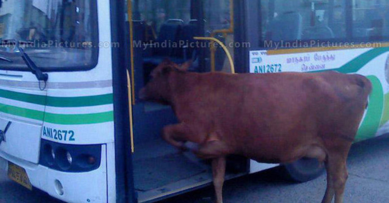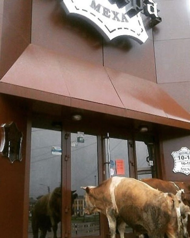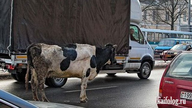 Коровка решила немного погулять по улицам города.