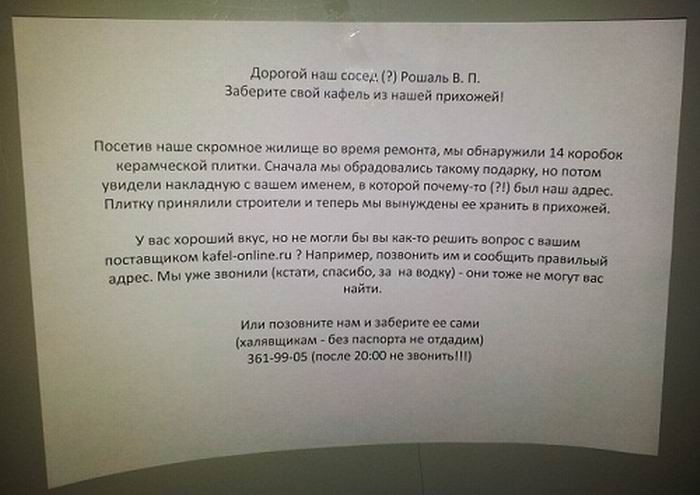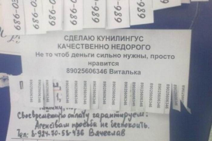 0 1 0 0 Картинки Креатив и маразм Valentina автор опубликовано 8 лет назад — обновлено в 1 секунду назад 370 просмотров Креативщики от народа продолжают нас смешить и удивлять своими "шедеврами" )) юмор объявление надписи позитив Valentina отслеживать Я очень хорошая и добрая )) Ваша реакция? 0 LOL 0 EW! 0 AWESOME! 0 FUNNY 0 NICE 0 FAIL! 0 LOVED 0 OMG! Комментарии Комментарий 0 comment Best Oldest Newest Write the first comment for this!