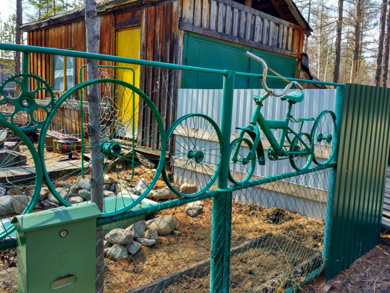 Хозяин жилища творчески подошел к обустройству ограждения своей территории.