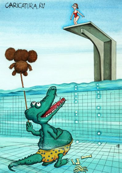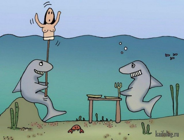 Акулы и крокодил решили поймать жертву на живца.
