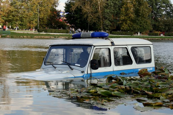 Сотрудники полиции утопили служебный автомобиль.