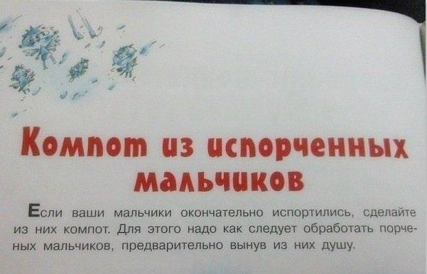 0 1 0 0 Картинки Примеры современной детской литературы Valentina автор опубликовано 8 лет назад — обновлено в 1 секунду назад 335 просмотров Некоторая предлагаемая литература для нынешних детей по-настоящему шокирует )) А вы как считаете ? юмор Дети Книги прикол Valentina отслеживать Я очень хорошая и добрая )) Ваша реакция? 0 EW! 0 AWESOME! 0 FUNNY 0 NICE 0 FAIL! 0 LOVED 0 OMG! 0 LOL Комментарии Комментарий 0 comment Best Oldest Newest Write the first comment for this!