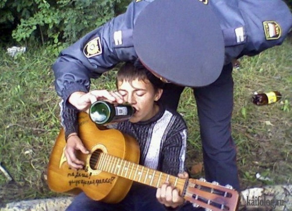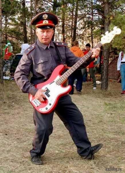 Сотрудники полиции демонстрируют свои способности игры на гитаре.