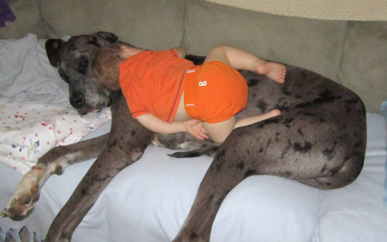 Собака вместо подушки.