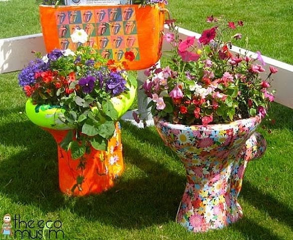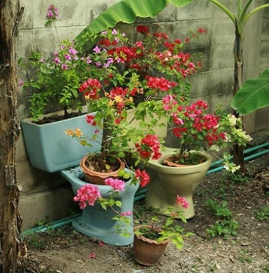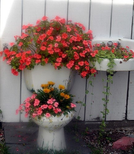 Вот что значит творческий подход, даже старая сантехника превращается в зеленый уголок.