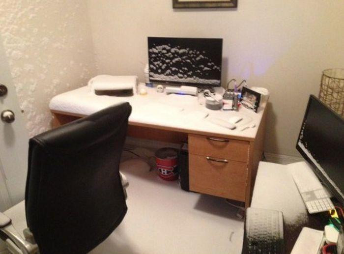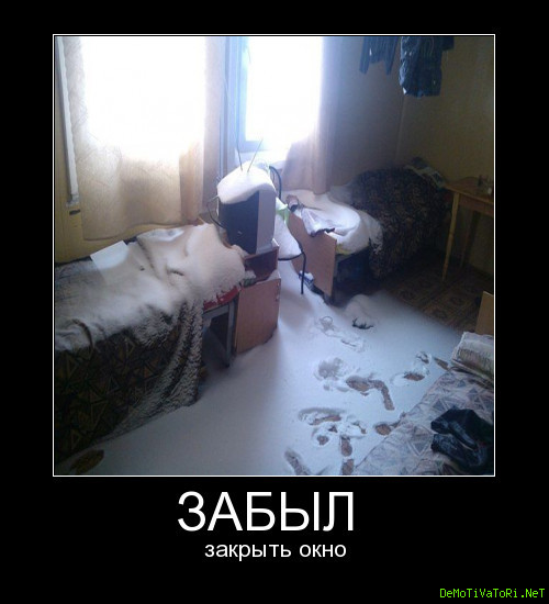 Когда уходил, забыл закрыть окно в комнате.
