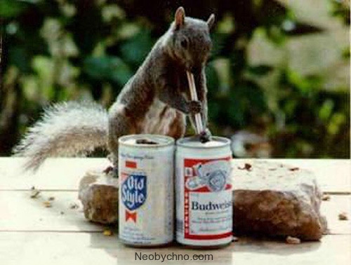 День был жарким, белочка решила утолить жажду коктейлем.