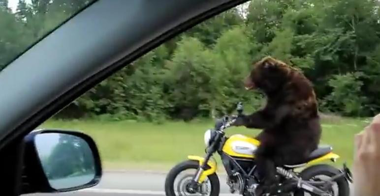 Медведь угнал мотоцикл.