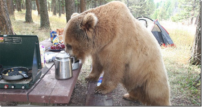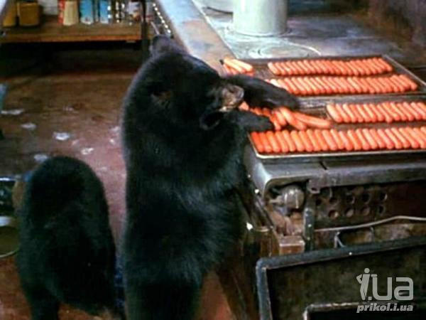 Медведи в поисках еды зашли к людям в гости.