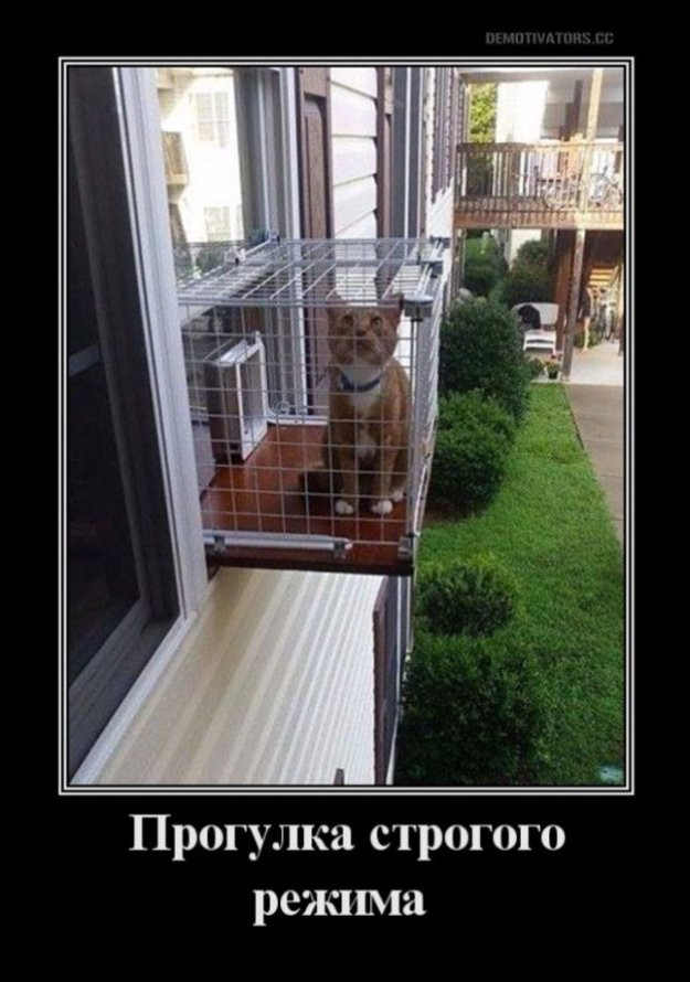 Хозяин предпринял все меры безопасности, чтобы кот не убежал.