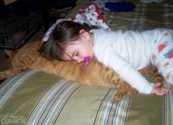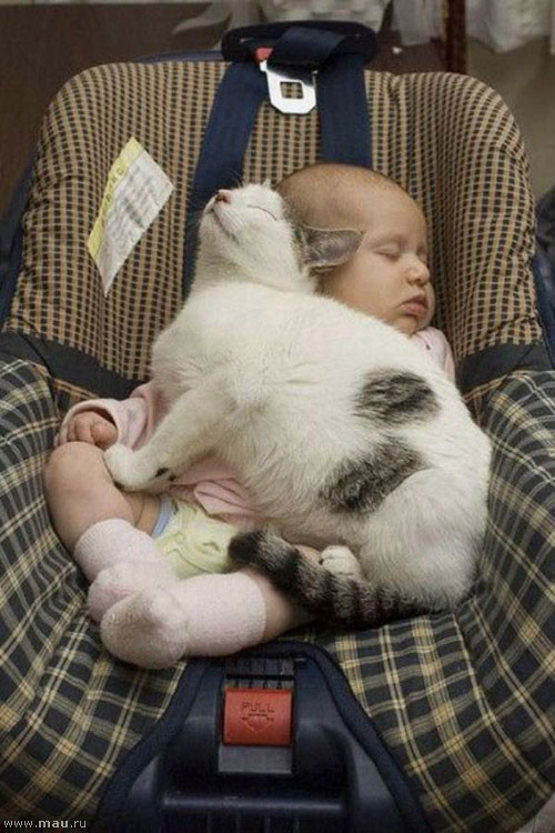 После вкусного обеда ребятня и коты решили немного подремать.