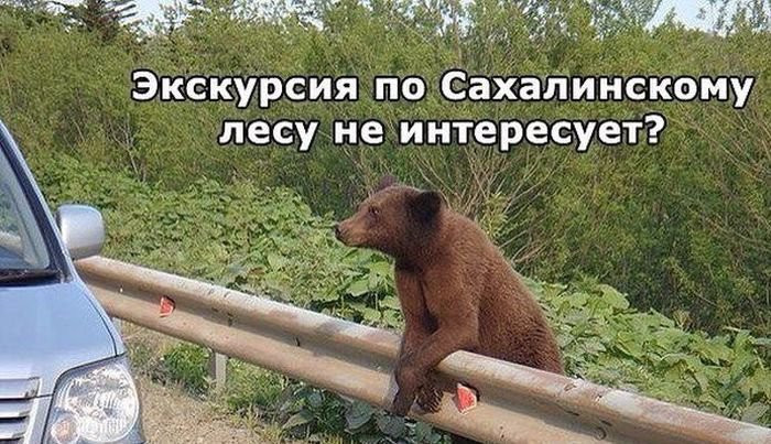 Медведи предлагают услуги гида по Сахалину.